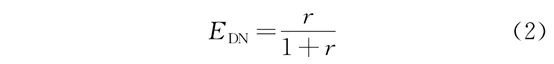 生物池內(nèi)回流比大小直接決定脫氮效率。在假設生物硝化及反硝化效率均為100%的前提下,脫氮效率隨著內(nèi)回流比的增大而增大,脫氮效率edn計算見式(2):